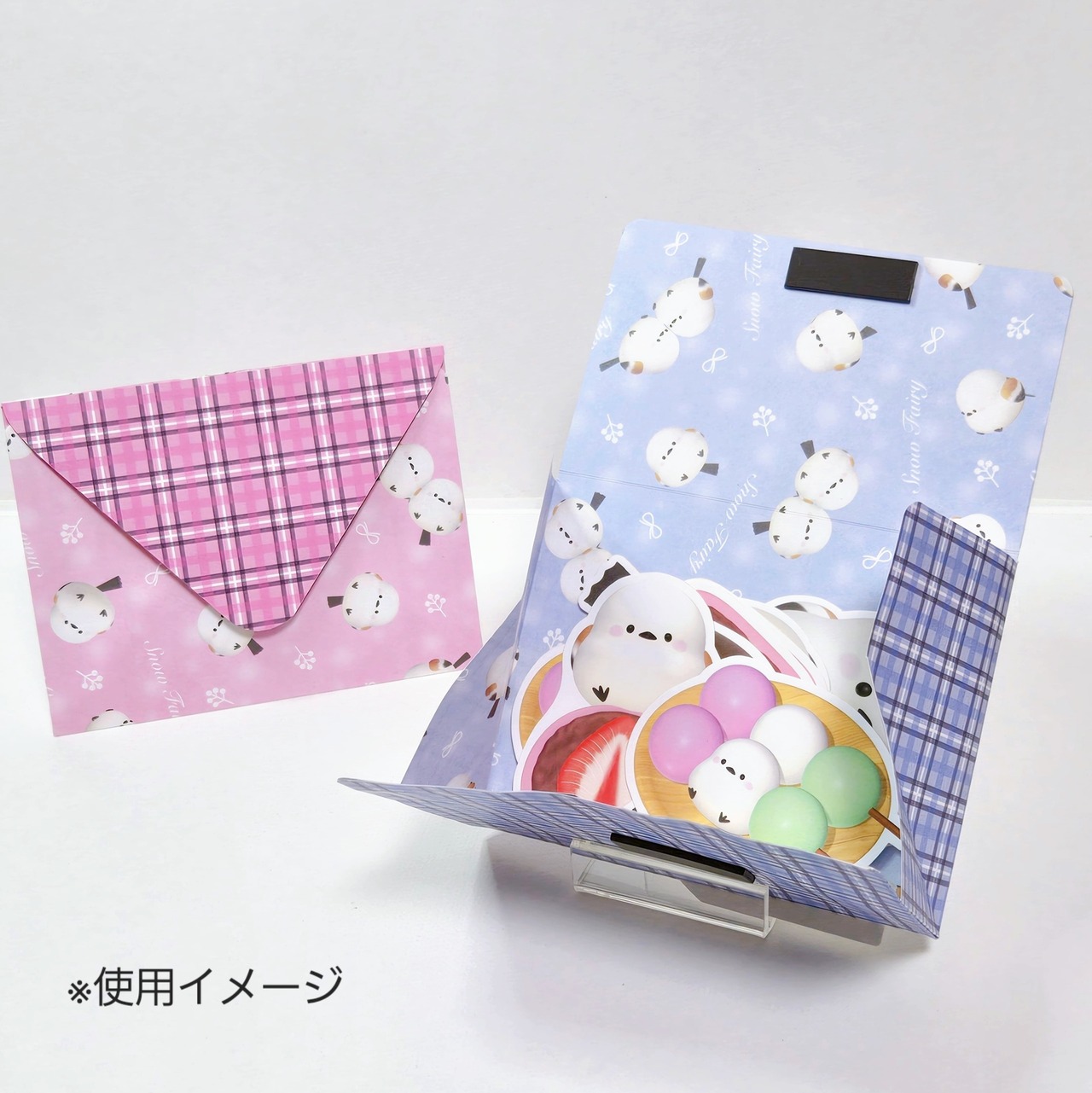 まん丸でコロン♪としたシマエナガちゃんをメインに、ふわふわと舞い落ちる雪をイメージしてデザインしました。❅