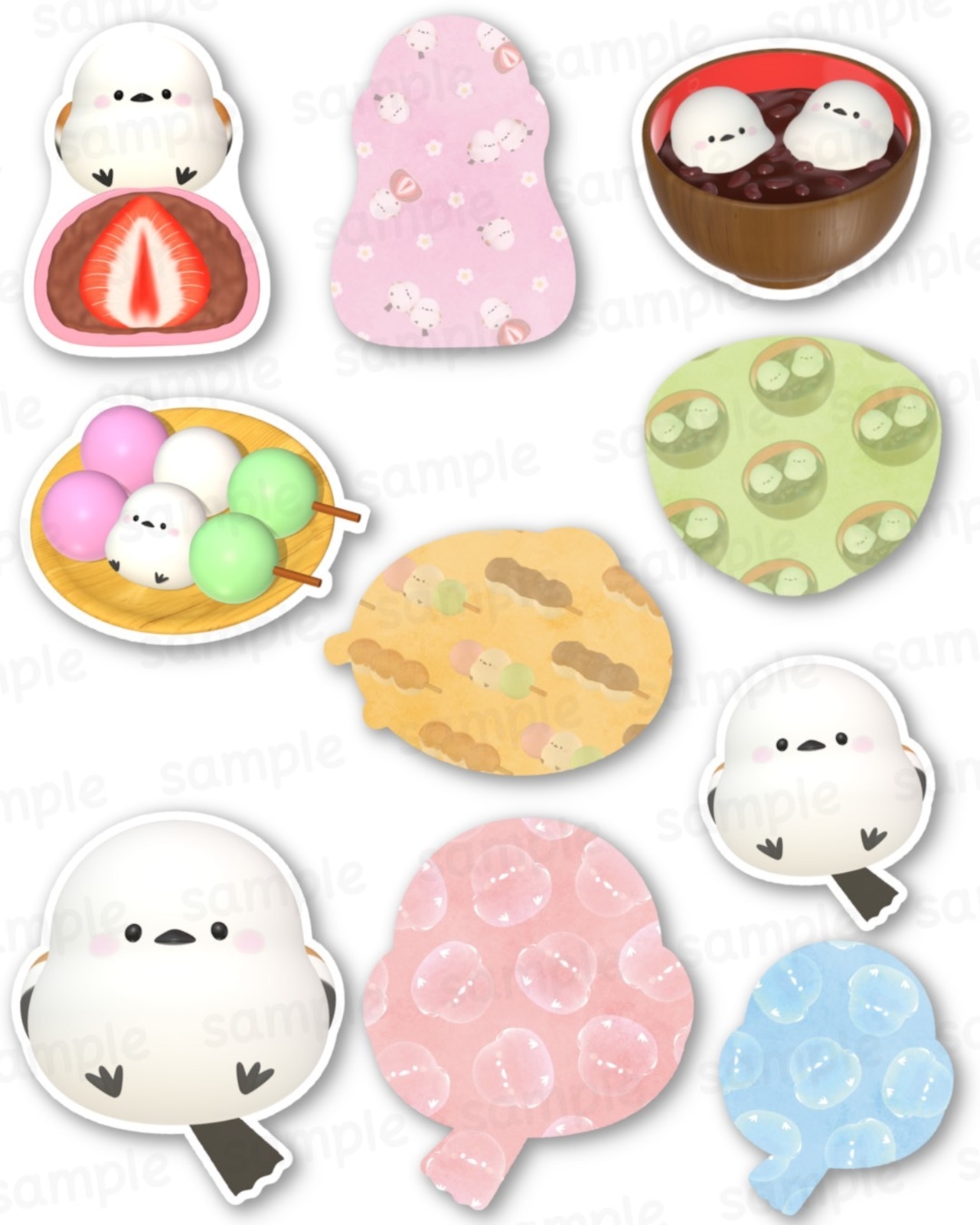10枚 3wayコラージュシート 和菓子とシマエナガ デザインペーパー