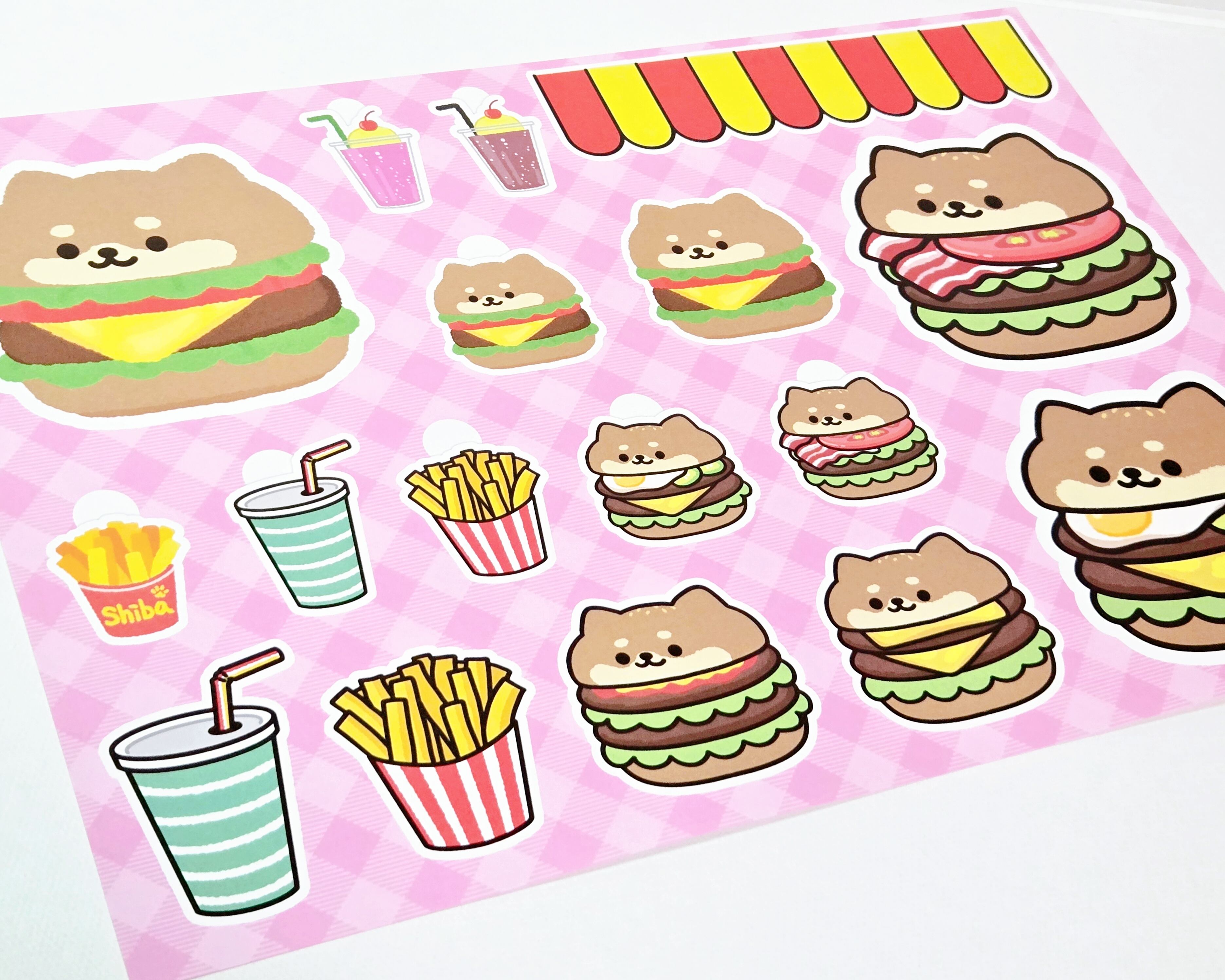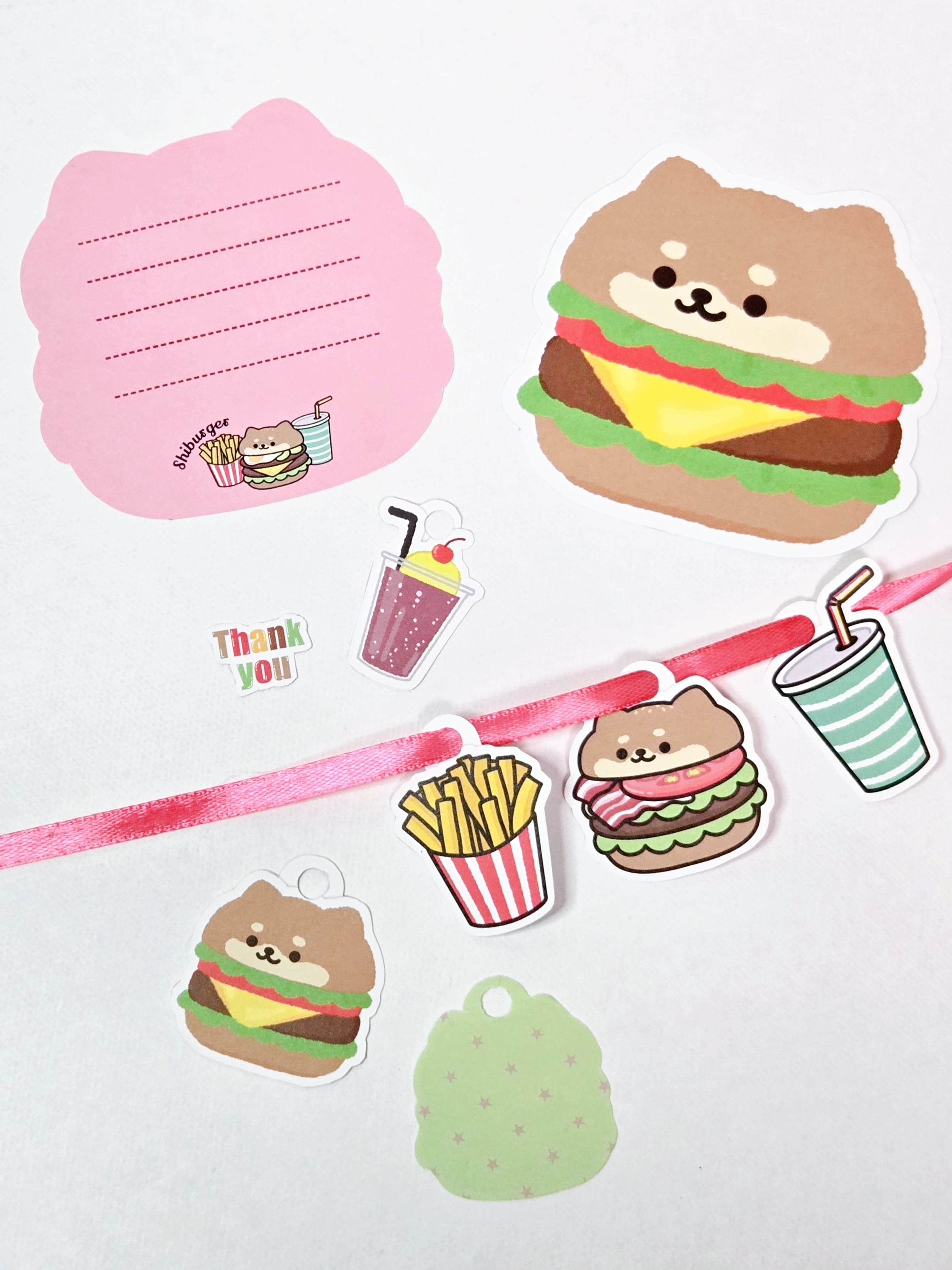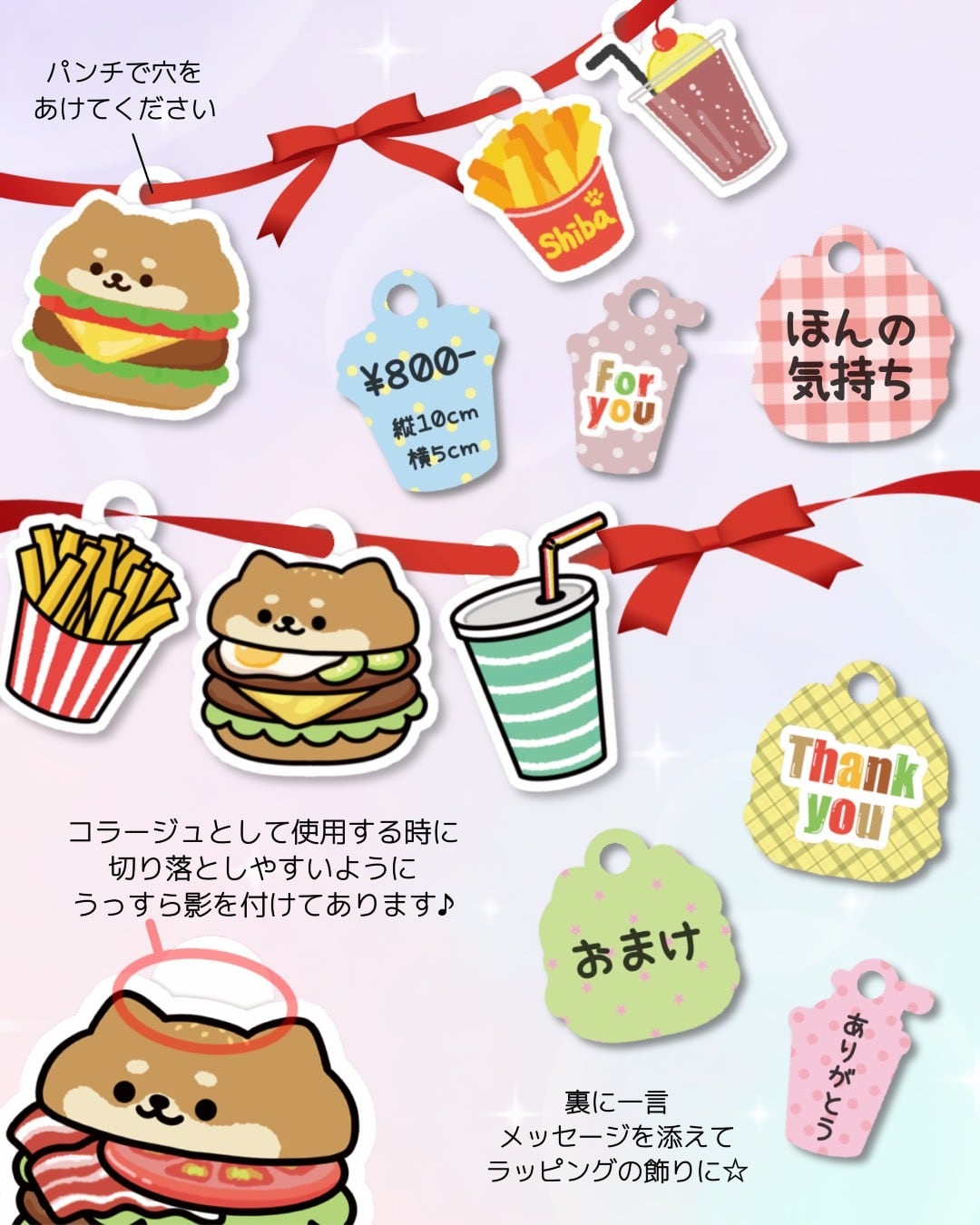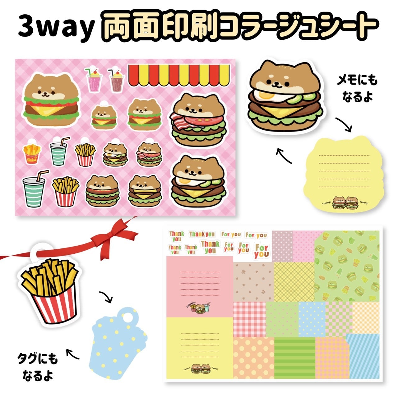 10枚 3wayコラージュシート 柴犬ハンバーガー デザインペーパー